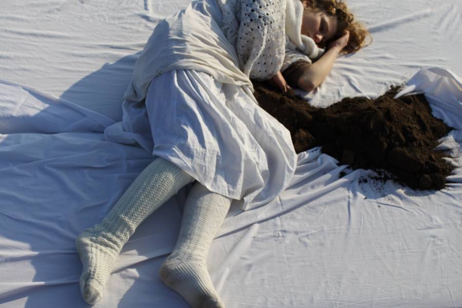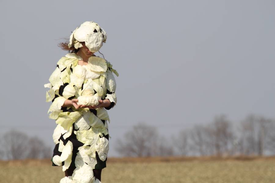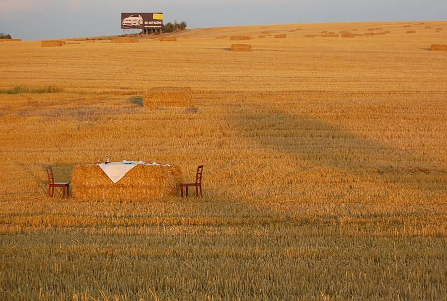 Lada Kopřivová / Bělé zelé / Pole / Postele rozestlané na poli do půl pasu