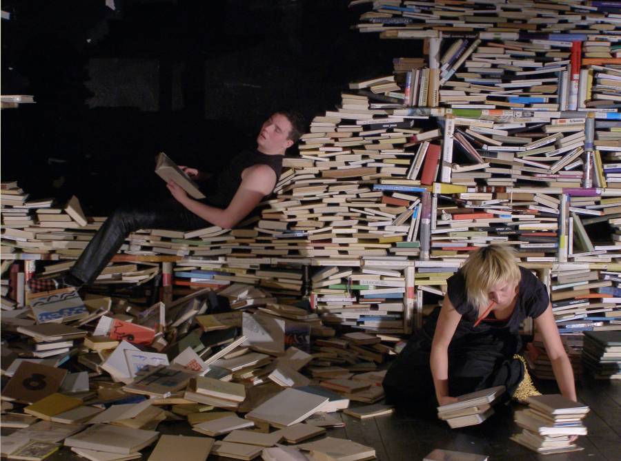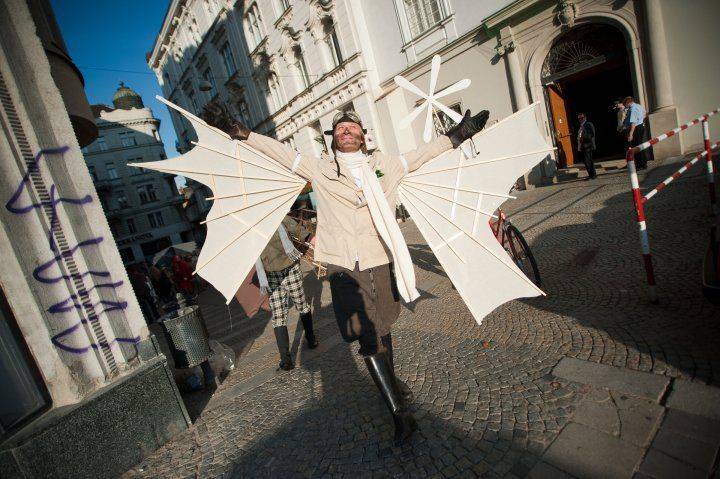 scéna Lucie Halgašová / kostýmy Iva Miklošková / Veselohra na mostě, Alexandr - Bohuslav Martinů, režie T. Pilař a L. Keprtová, Bezbariérové divadlo Barka, premiéra 2009